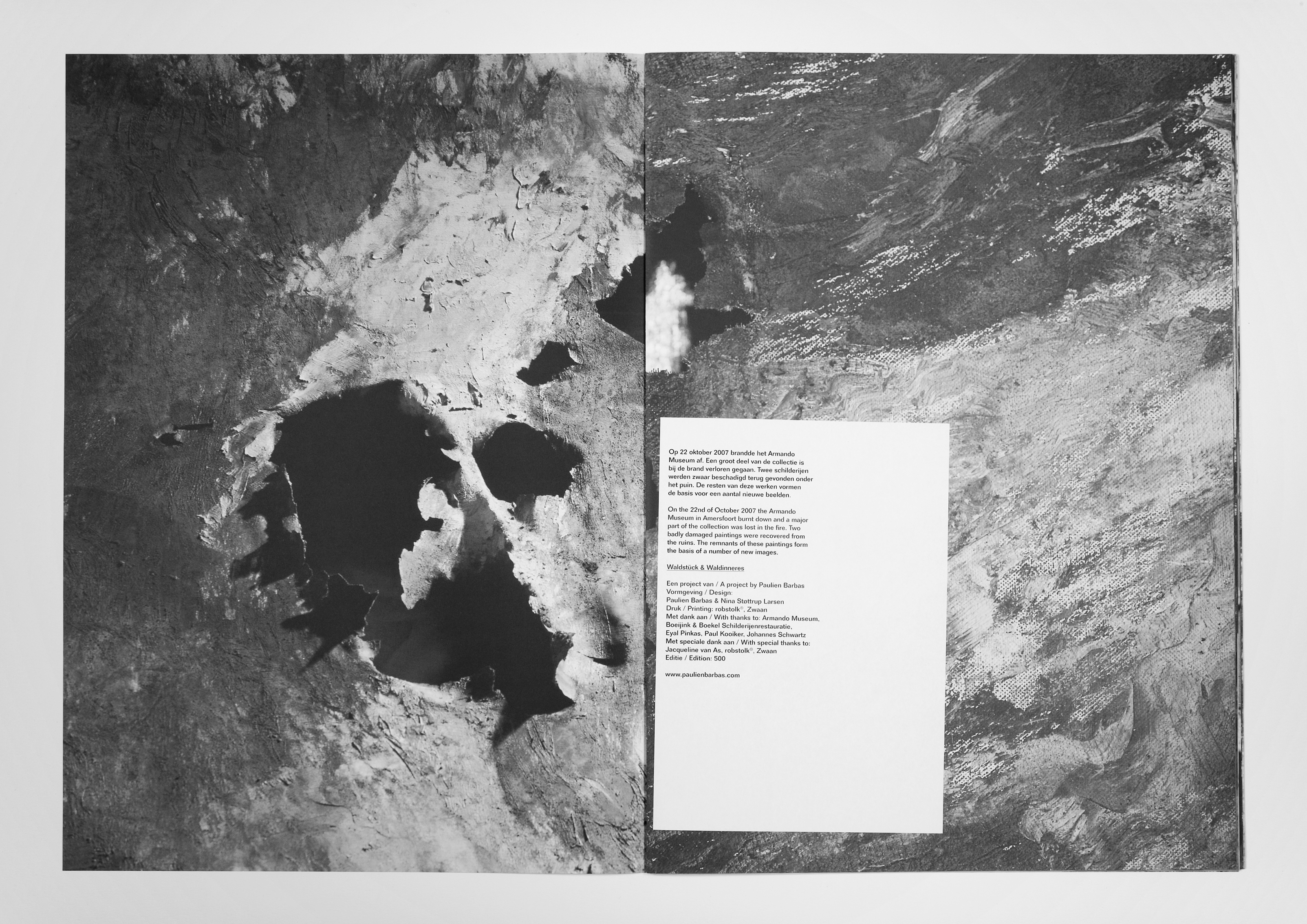 On the 22nd of October 2007 the Armando Museum in Amersfoort burnt down and a major part of the collection was lost in the fire. Two badly damaged paintings were recovered from the ruins. The remnants of these paintings form the basis of a number of new images.