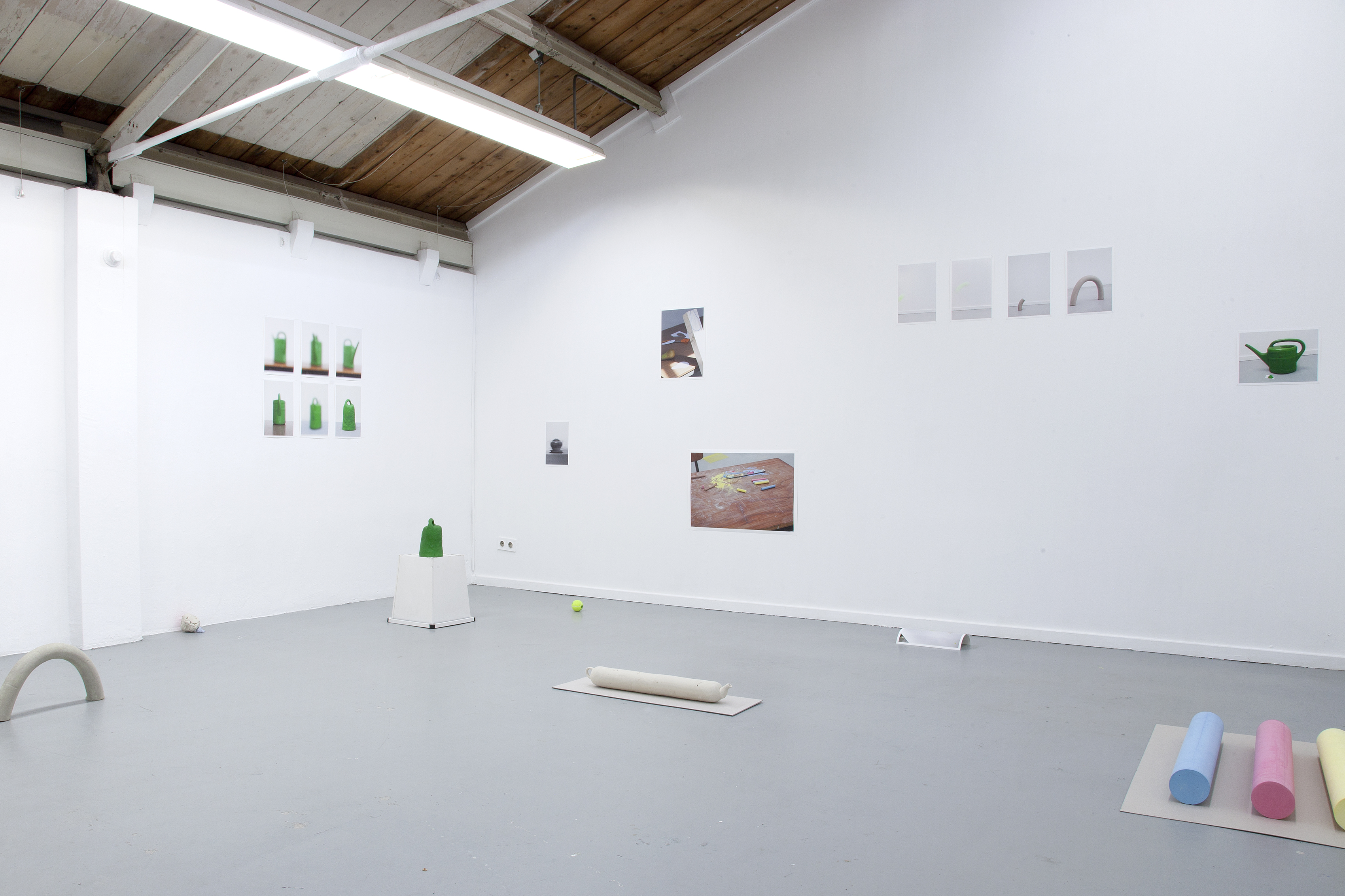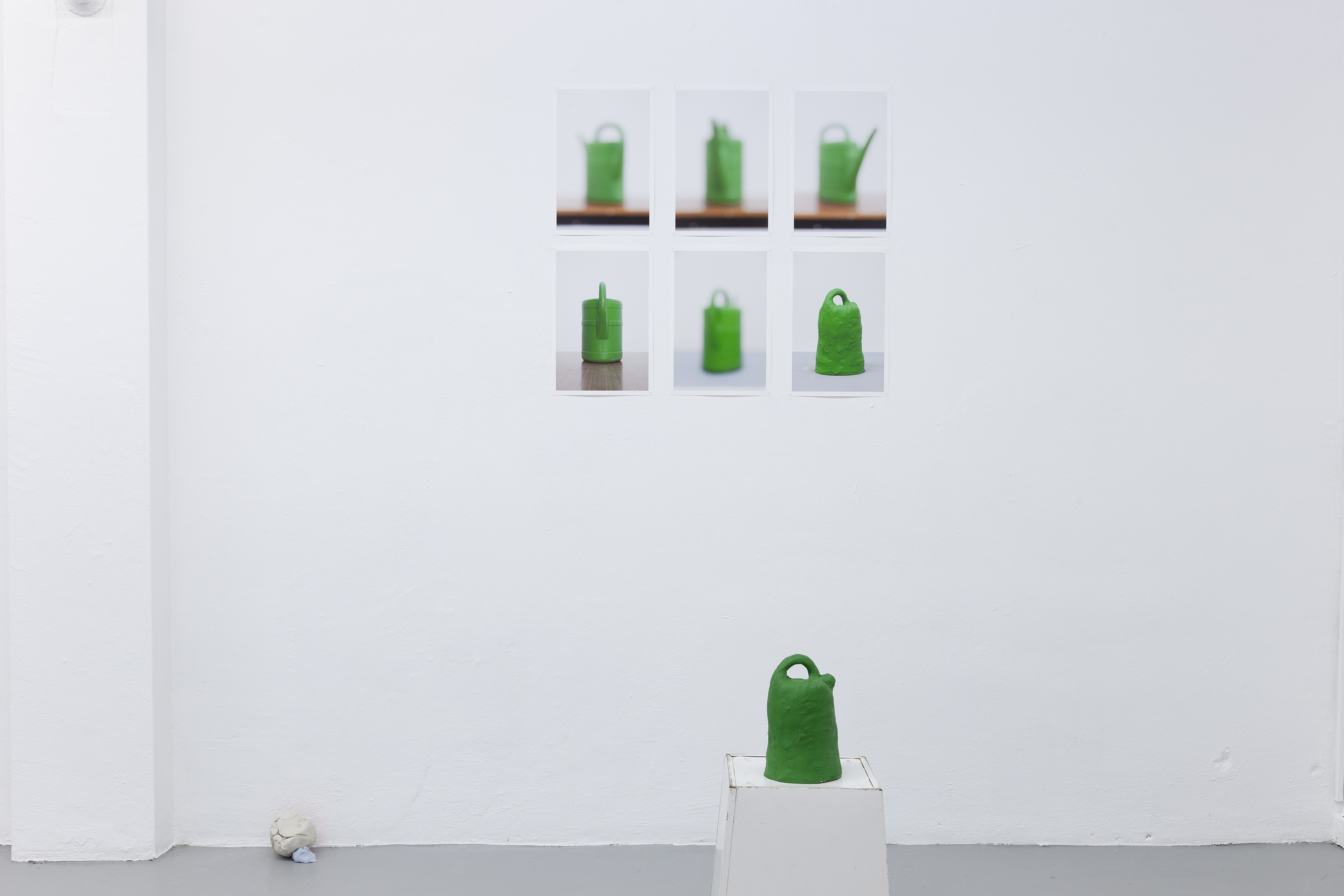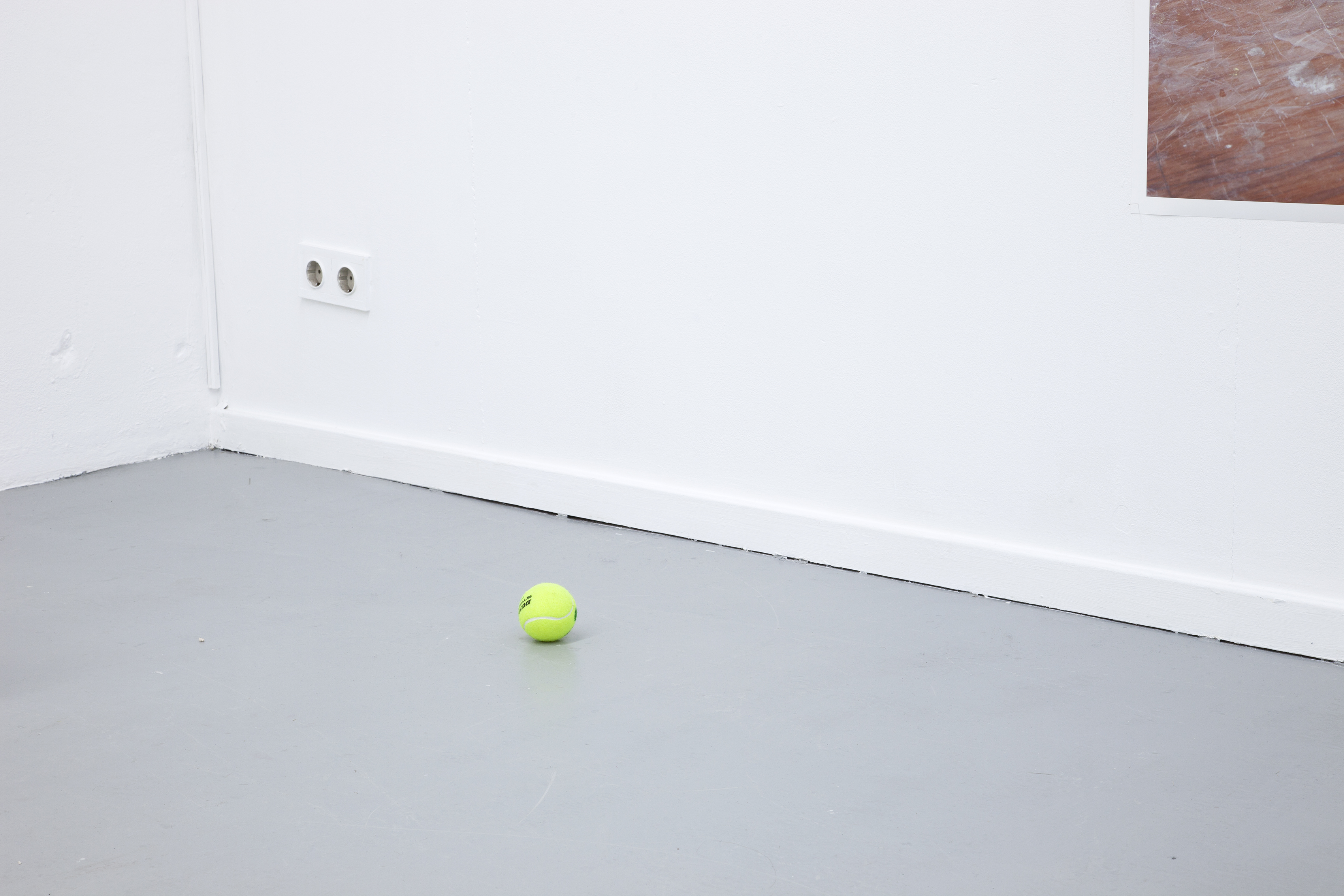 'When it starts' includes photographs, clay- and plaster objects and a tennis ball. The installation displays an invented analogy between everyday objects and unknown forms. The new forms derive from misinterpretation and displacement of things we know well.