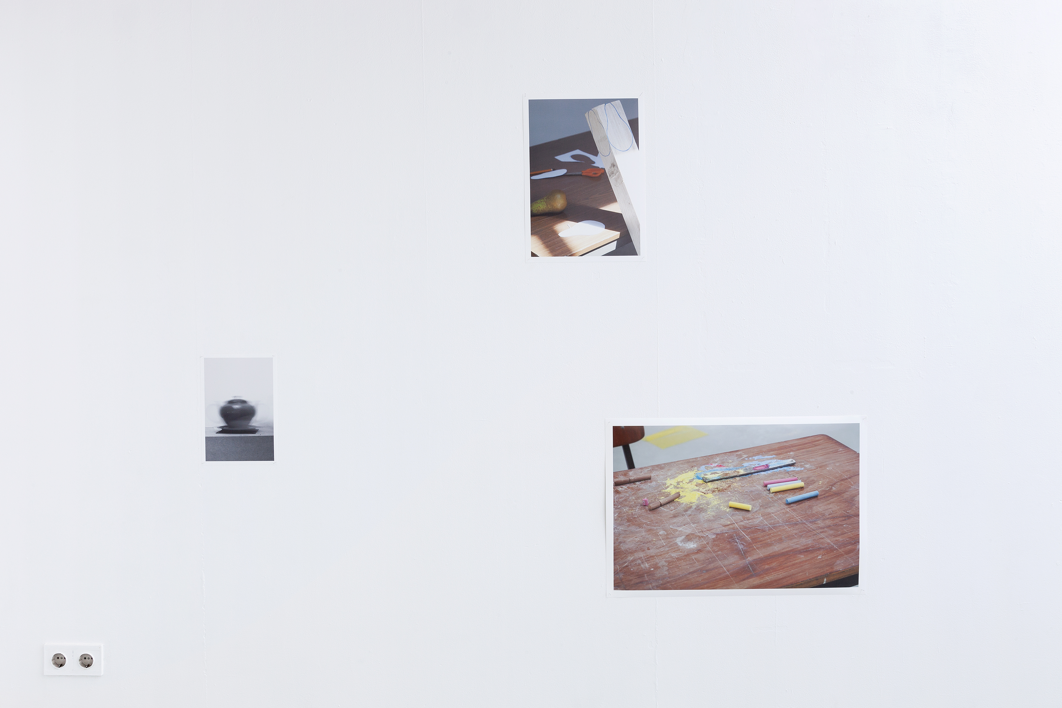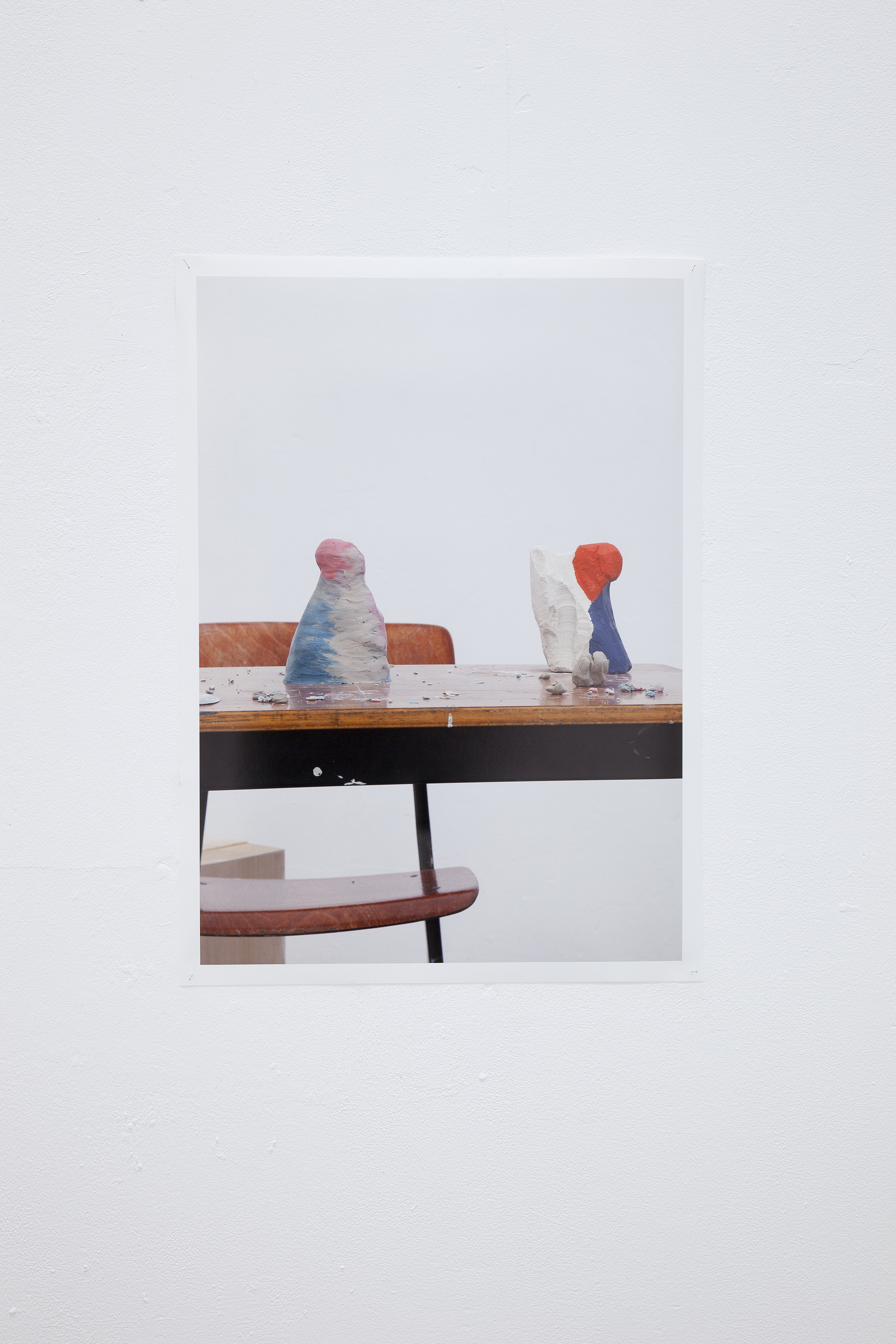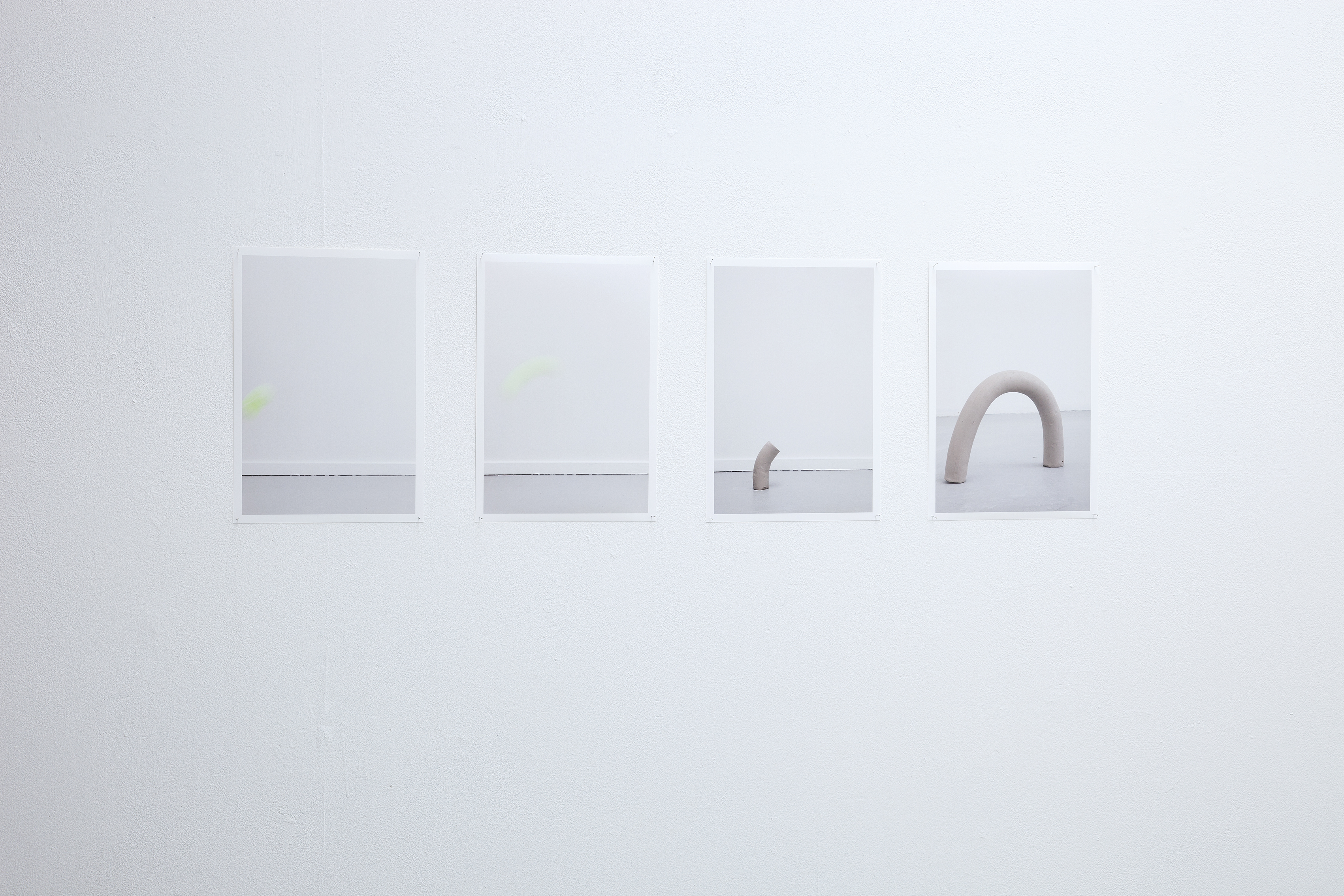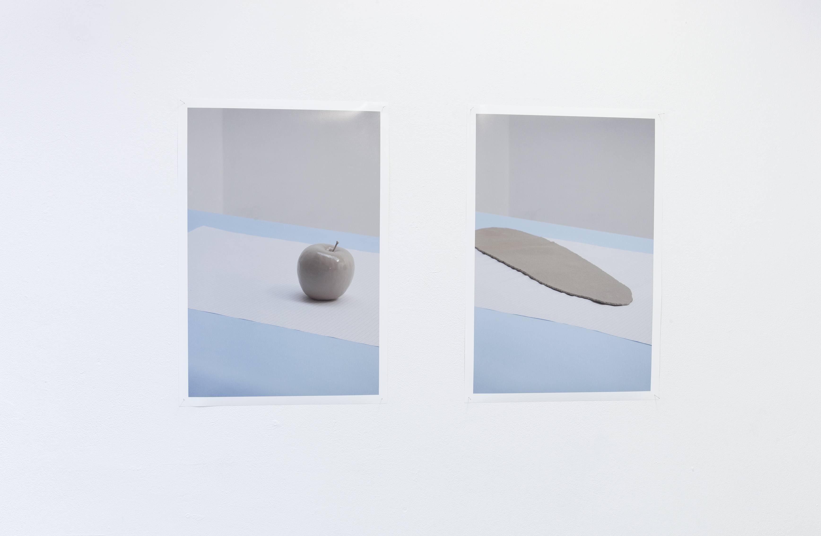 'When it starts' includes photographs, clay- and plaster objects and a tennis ball. The installation displays an invented analogy between everyday objects and unknown forms. The new forms derive from misinterpretation and displacement of things we know well.